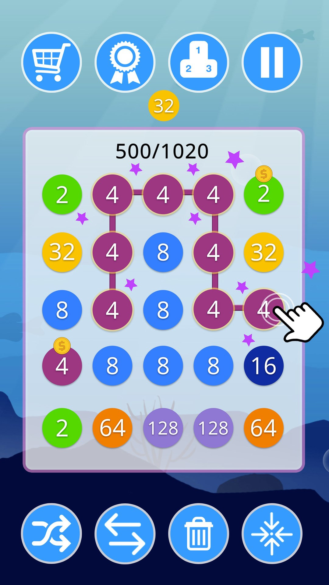 2-4-8 : link identical numbers