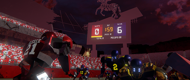 2MD VR Football Evolution is a room-scale two-minute drill VR arcade experience where players take on the role of quarterback tasked with capturing victory in the final minutes of a game. Draw the plays, call the shots, and throw the ball to take down opponents before the clock runs out. Or Else. What began as a simple engine update has subsequently transformed . . . nay, EVOLVED . . . into an updated game build with an entirely new presentation but the same addictive gameplay.