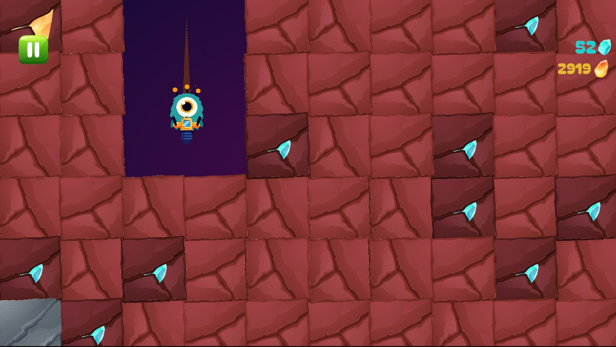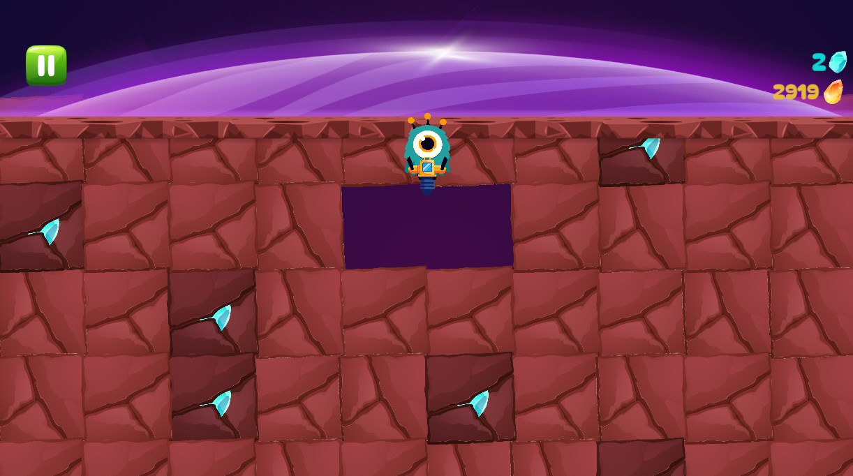 The main goal is to dig deep into the ground, breaking blocks of land to search for minerals (blue and yellow gems).