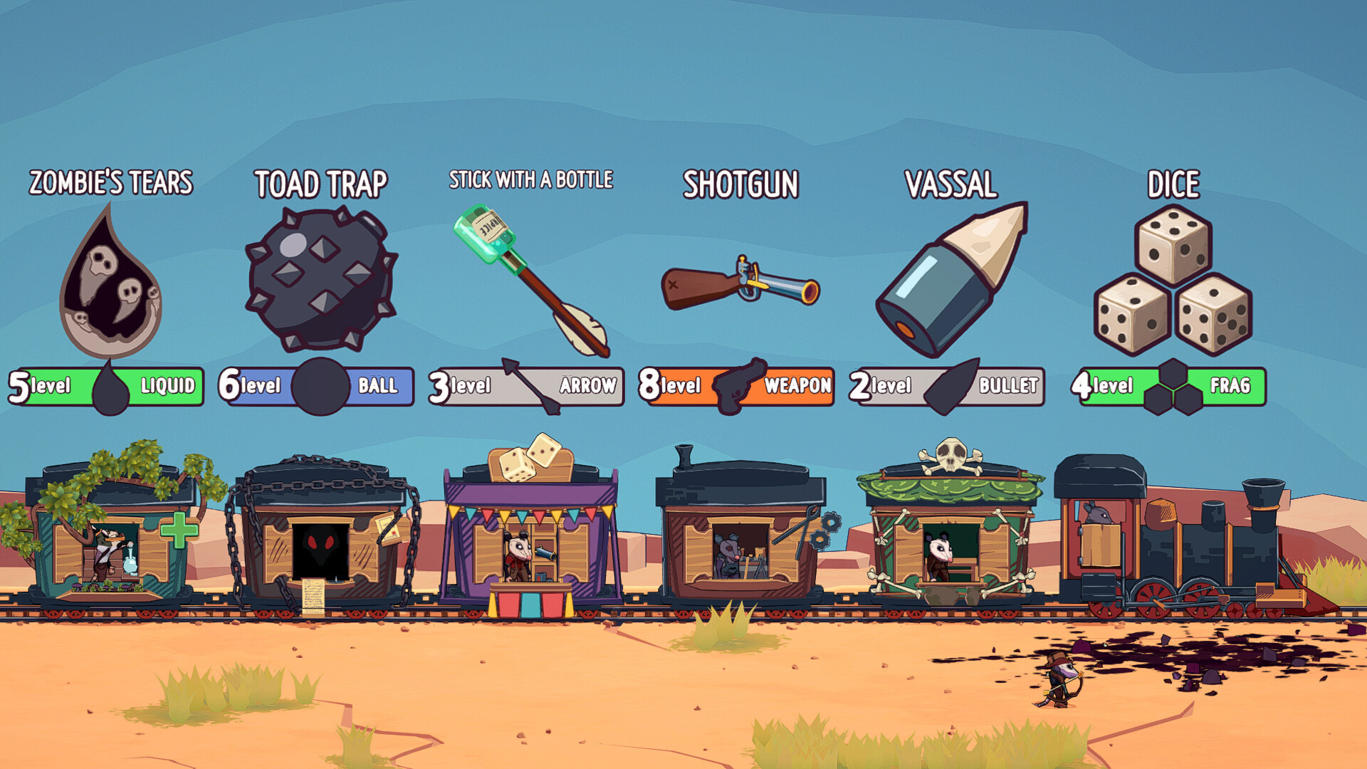 You are a brave Opossum and the Guardian of the Western Railroads. Protect your train from hordes of infected animals and find the source of a mysterious plague.