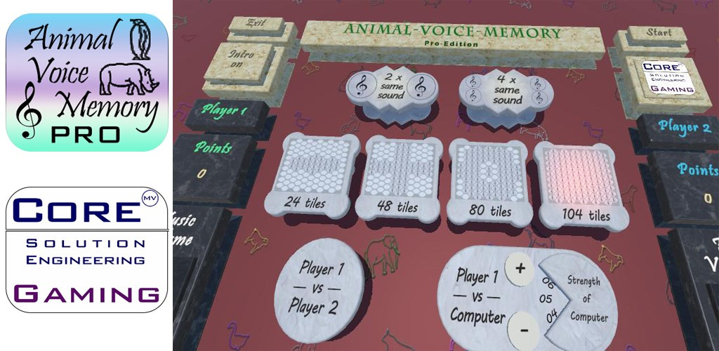 You know the game 'Memory' where you have to choose two similar tiles? This is exactly it but insread of pictures on the tiles you have to remember the voices of the animals that are linked with the tiles