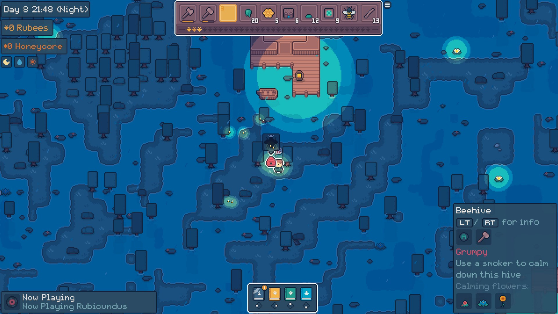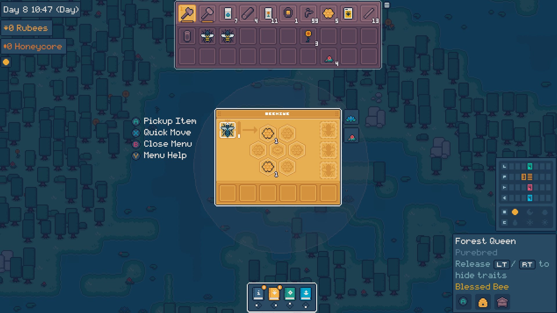 Set in a series of lush environments, it uniquely combines farm building, resource gathering & production, and beekeeping minigames.