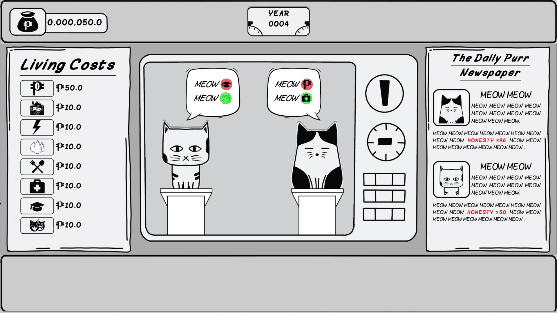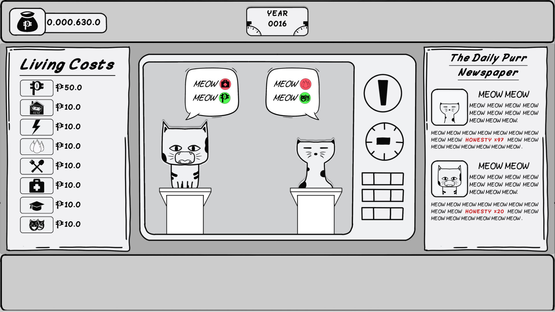Balance your limited budget, make strategic votes, and keep your family satisfied, all while navigating the unpredictable landscape of feline politics. Will you thrive, or will the promises made by smooth-talking candidates lead your family into ruin?