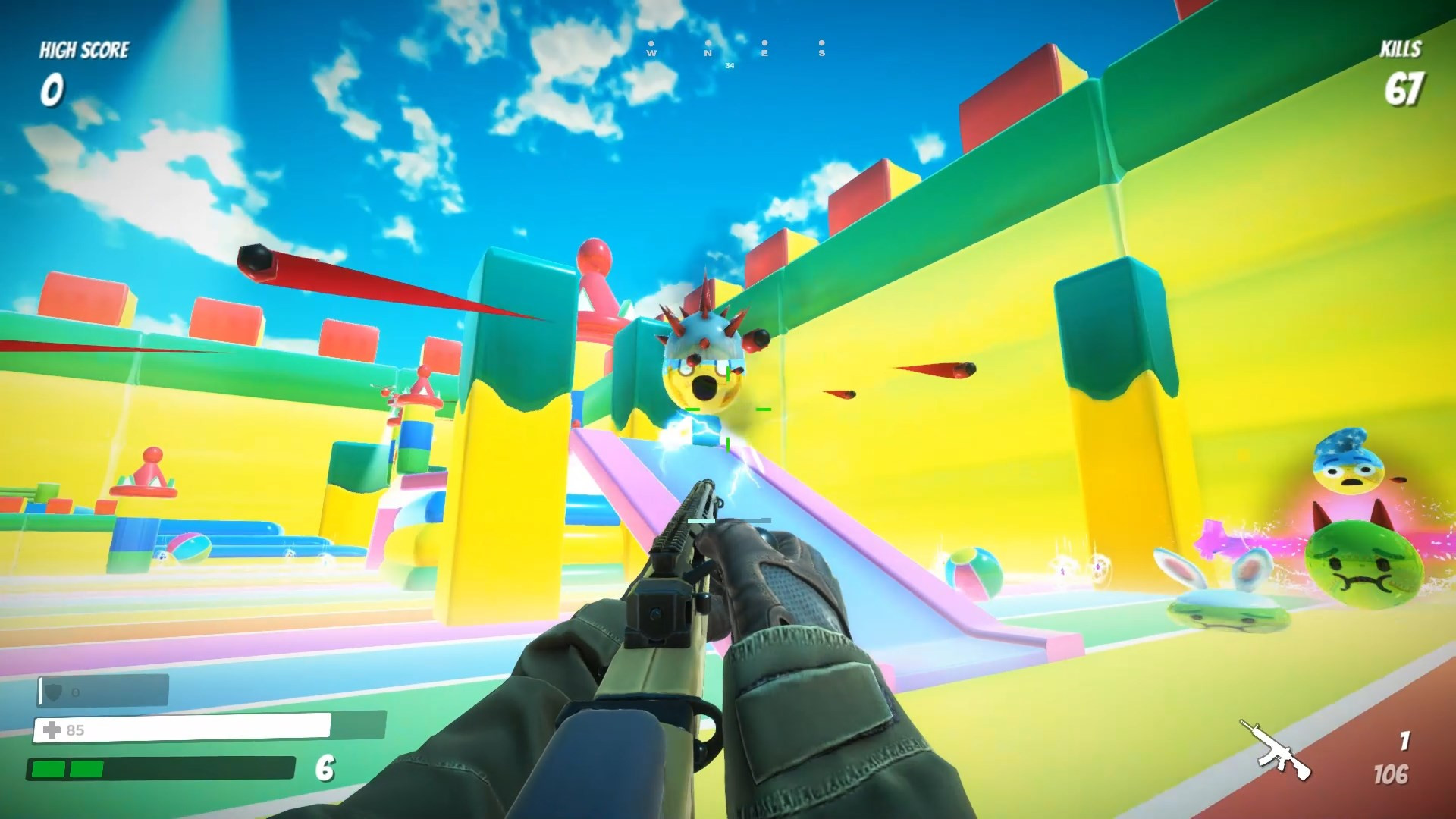 As the arena fills with bouncing, exploding, and bullet-spewing emojis, the game becomes a frantic dance of dodging, aiming, and managing your ammo while exploiting map hazards like explosive sweets or damaging zones to survive longer. The further you go, the crazier it gets — until you’re finally overwhelmed. But every run earns progress, new arenas, and more chaos for your next rampage.