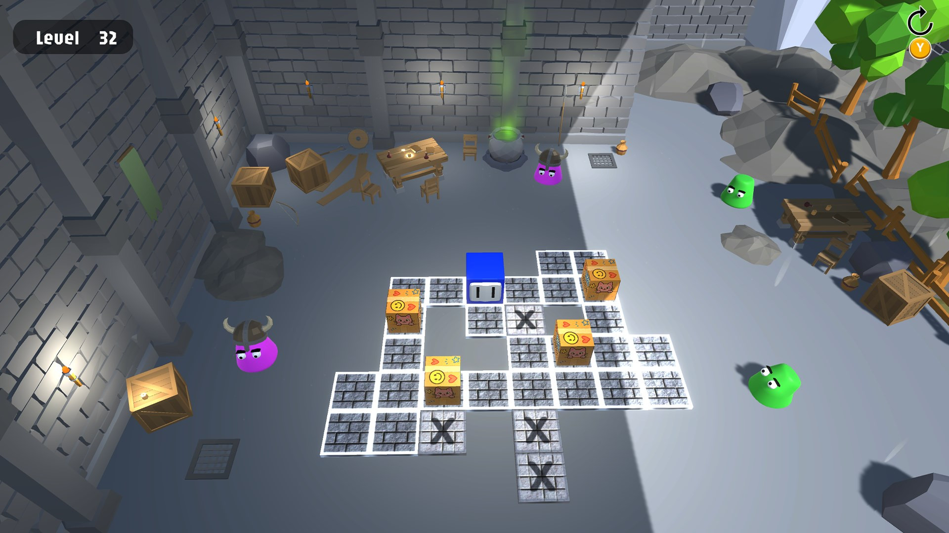 During his travels, he discovered that mysterious villains have trapped helpless kittens inside boxes! Now, it's up to him to solve challenging puzzles to set them free.