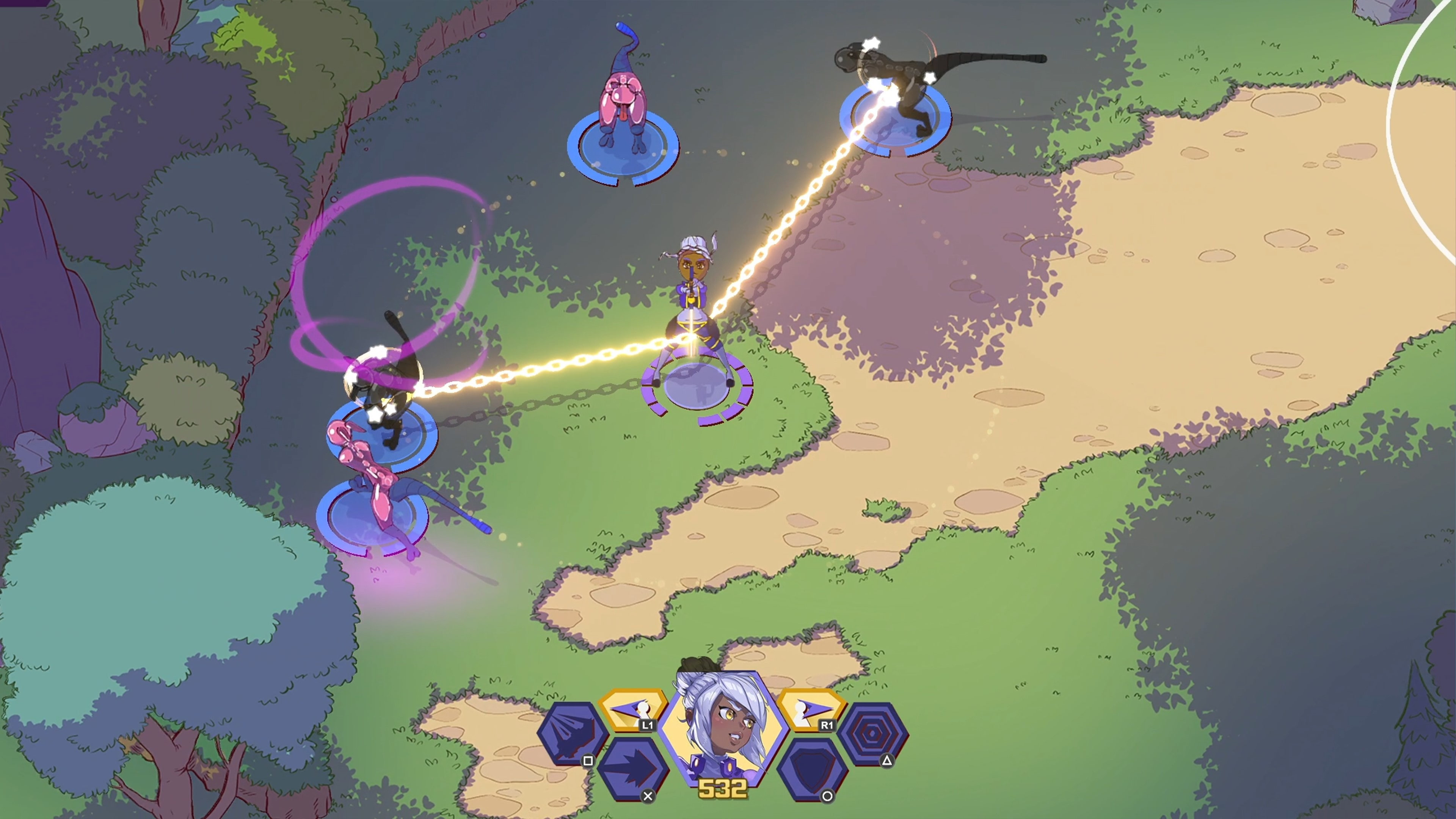 Play as three unique characters (Tank, Striker or Healer), each with his/her own set of abilities - both over the Internet and with friends at home (couch co-op).