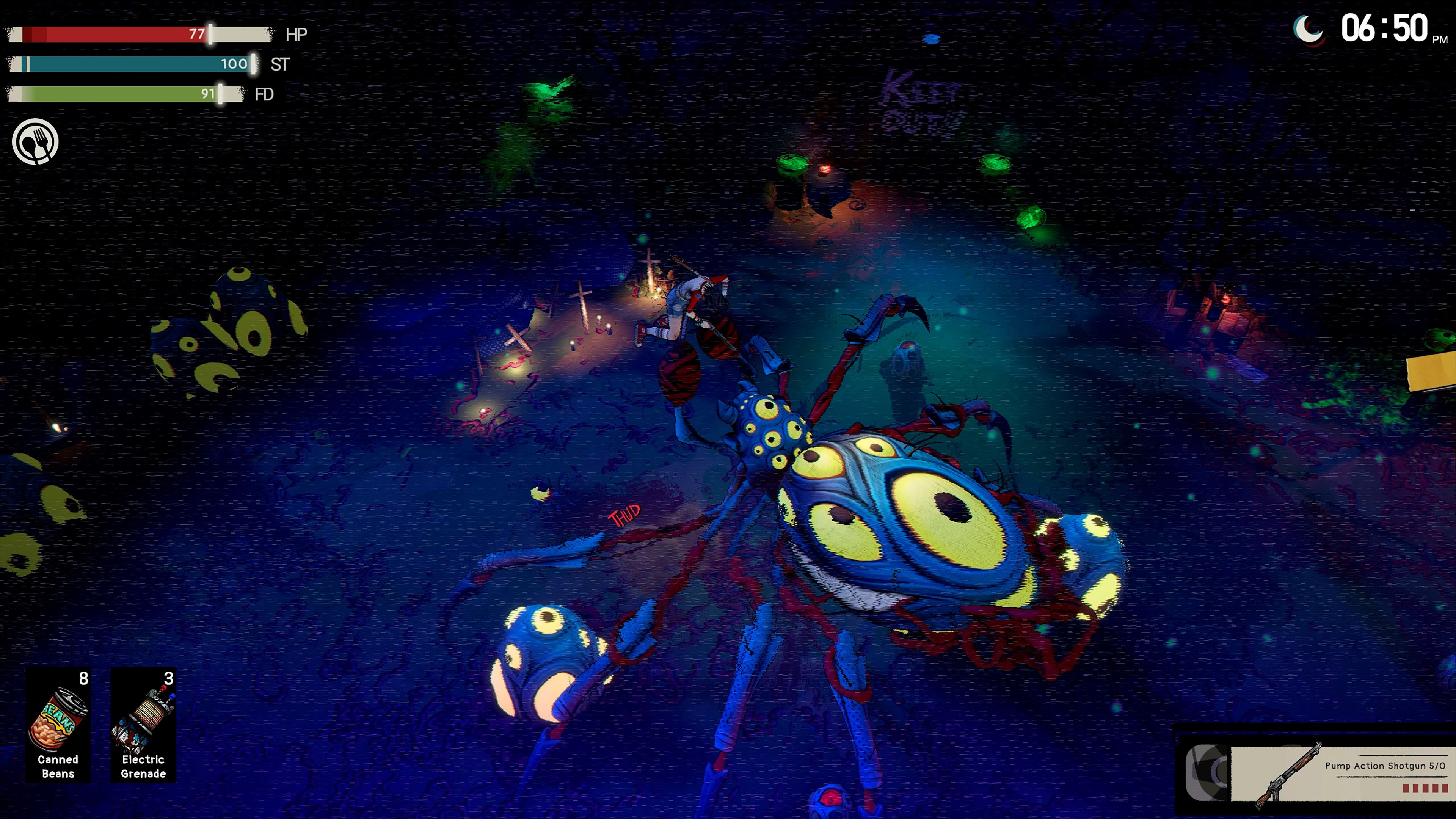 Isometric craft-based survival horror with 80’s vibes and comic book flair