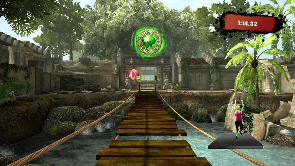 - Fitness Adventure Mode - featuring over 50 predefined circuits filled with freeform-style action (running, climbing and jumping) and plenty of surprises all set in a unique jungle temple environment. Reach for those bonus medallions along the way for extra points.
