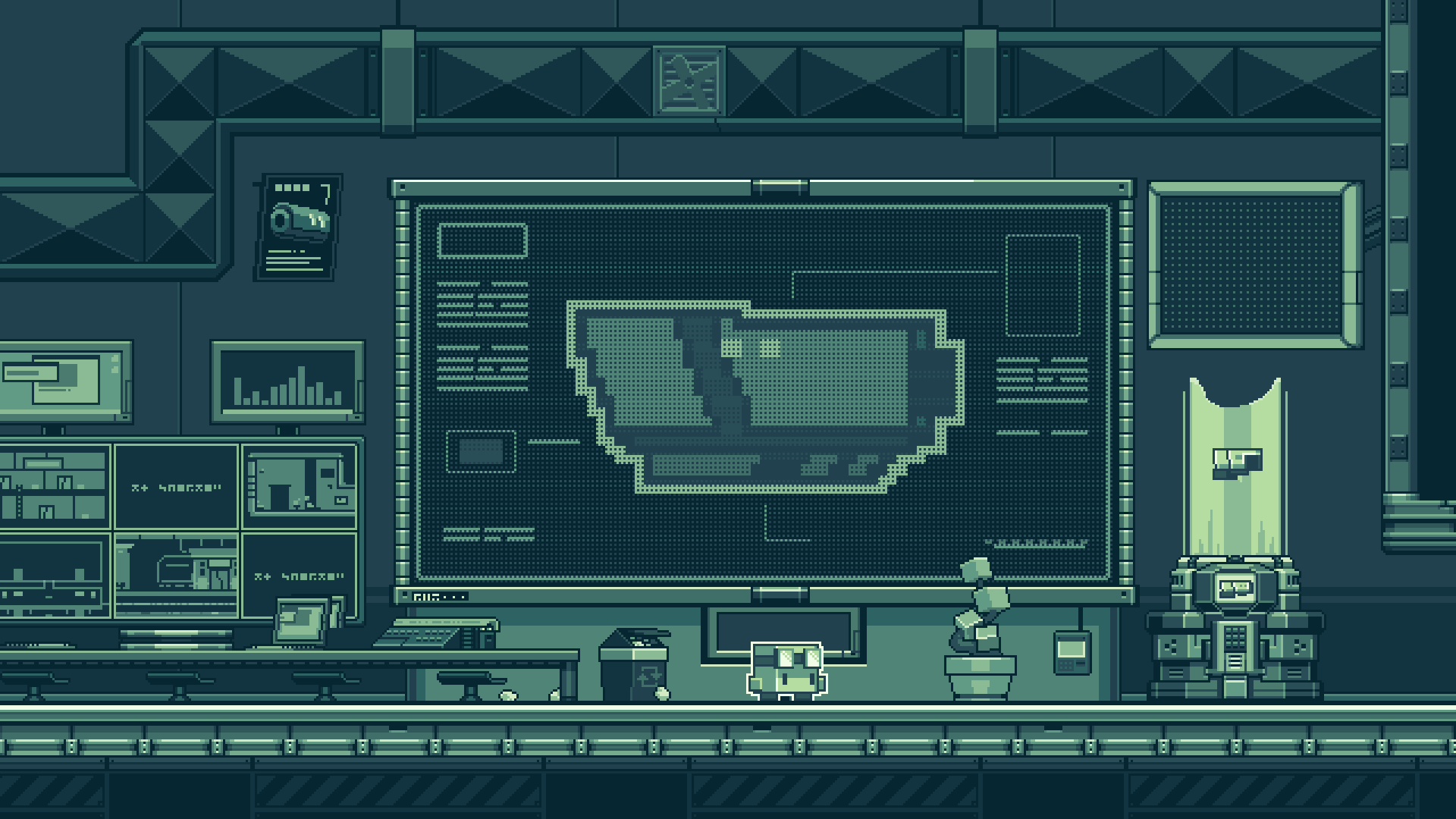A pixel-art lover's dream, this two-tone underwater side of the Planet Cube has been crafted with meticulous care. From the distant seascapes of the ocean floor, to smallest details of the science facility, every pixel has been placed with the utmost attention to detail.
