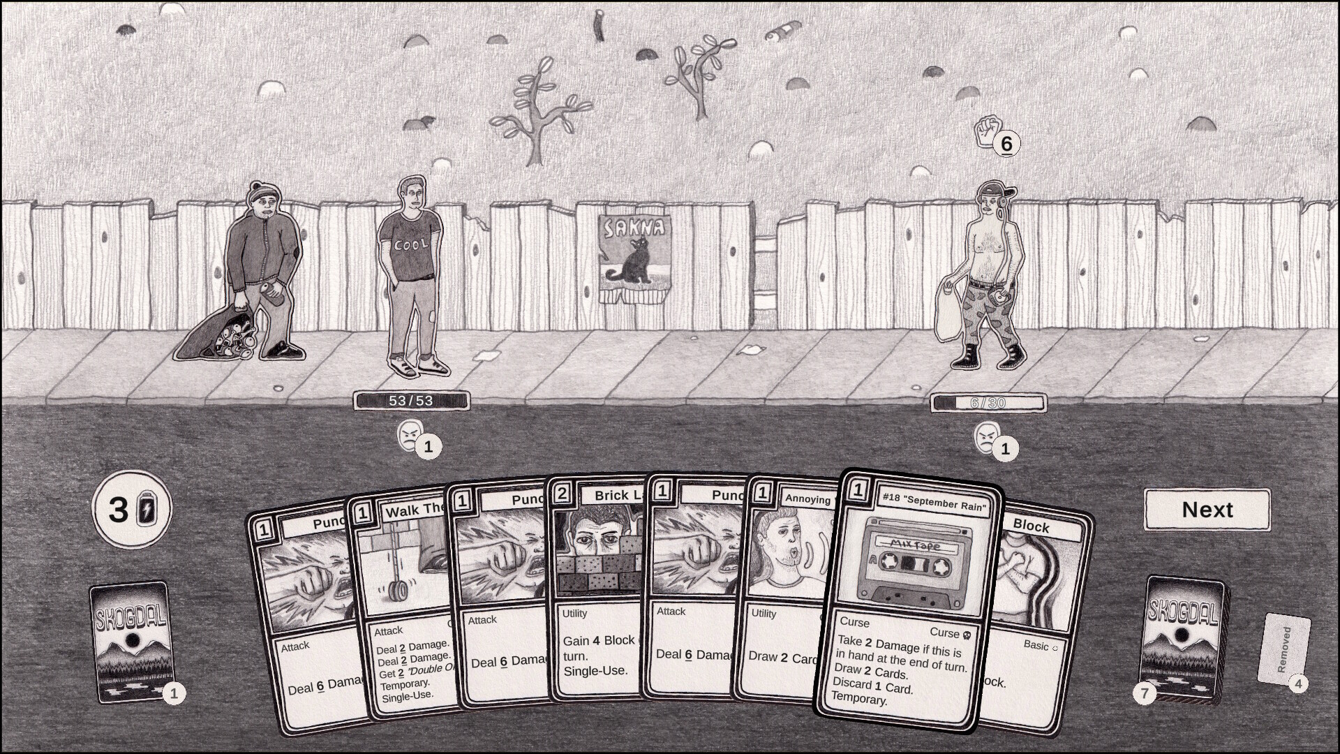 Skogdal is a deckbuilding adventure card game. Explore a large hand-crafted world with weird, but familiar inhabitants. To uncover the mystery, you will have to explore multiple paths through Skogdal, across multiple runs.