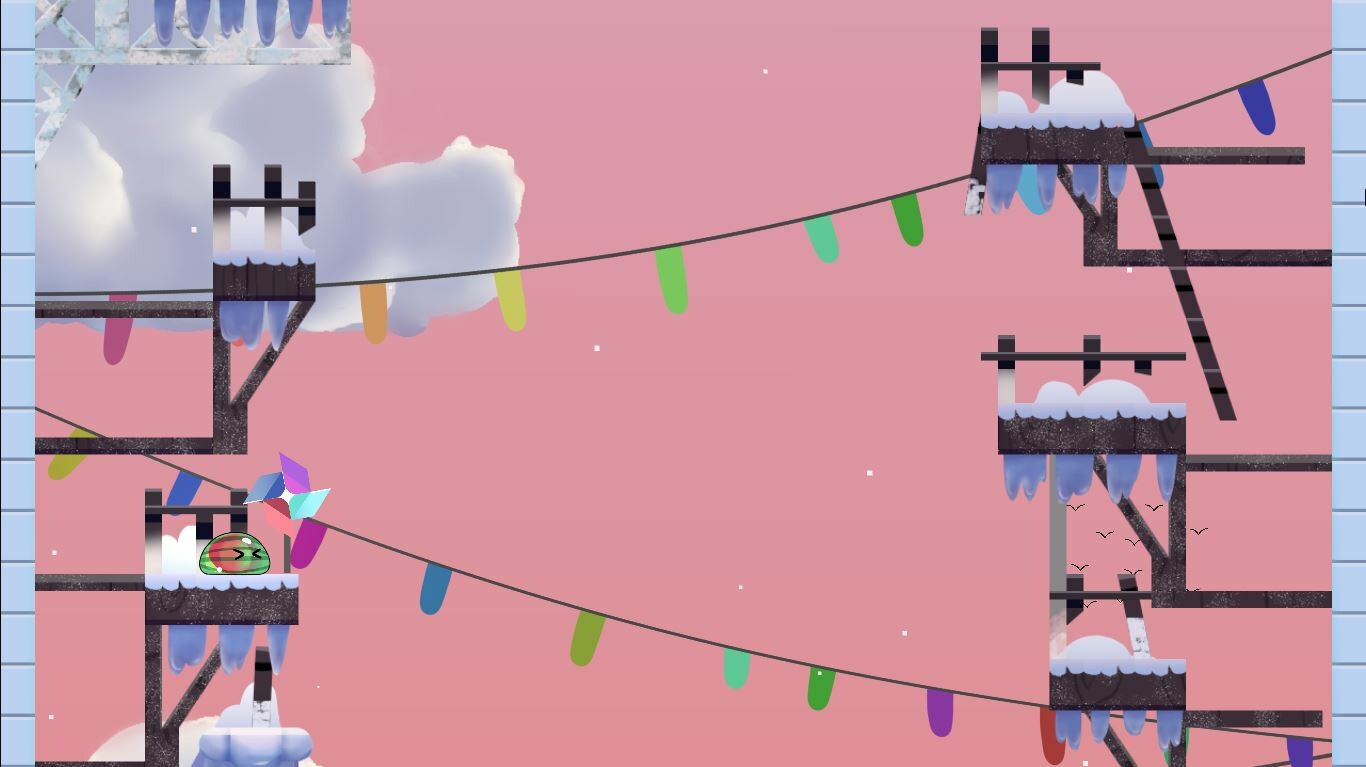 Watermelon fell from a cable car and needs your help to get to the top, a precision platform game that will test your patience and accuracy in the jumps you make. You will have many falls, but it will be part of the process.