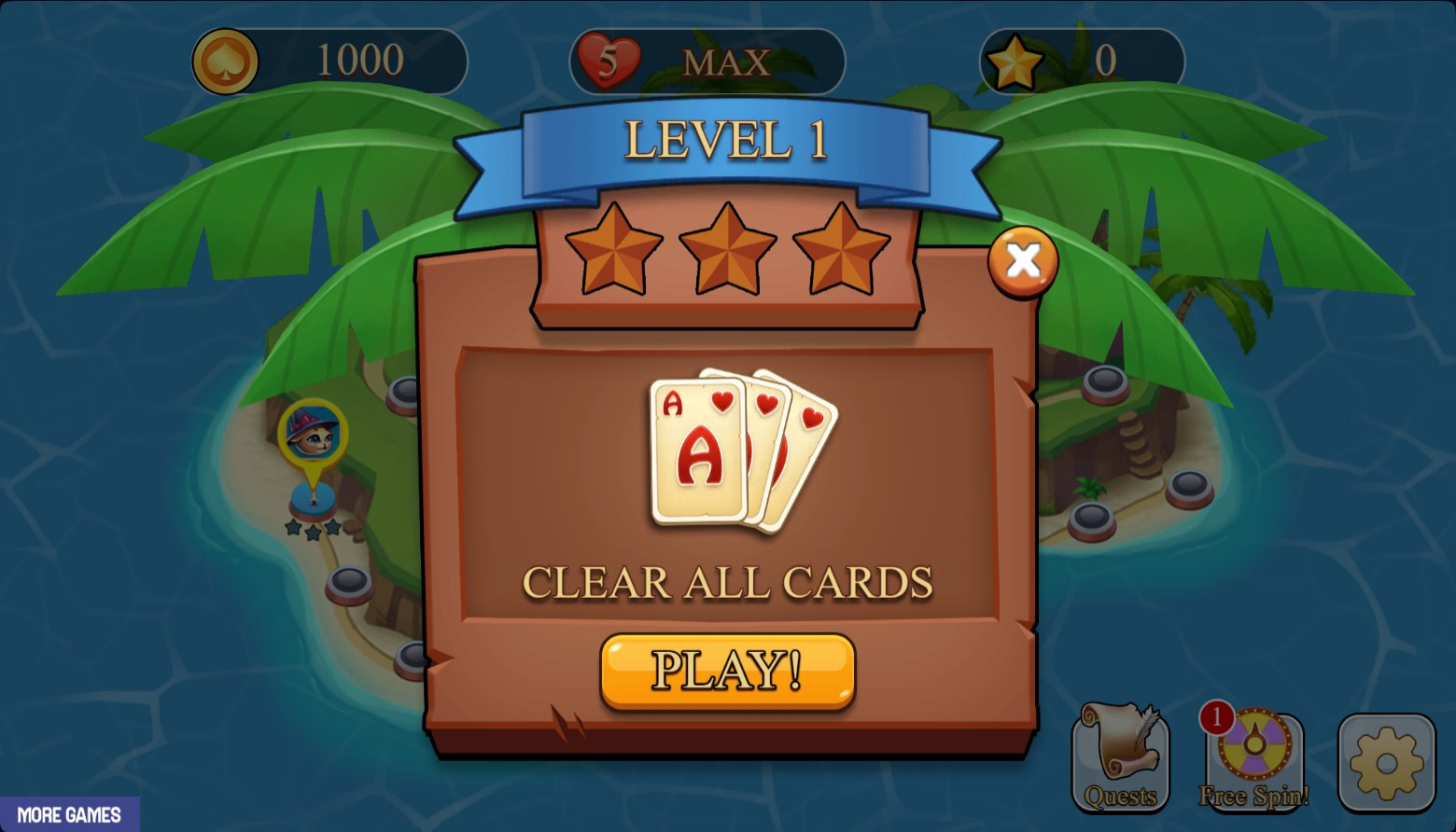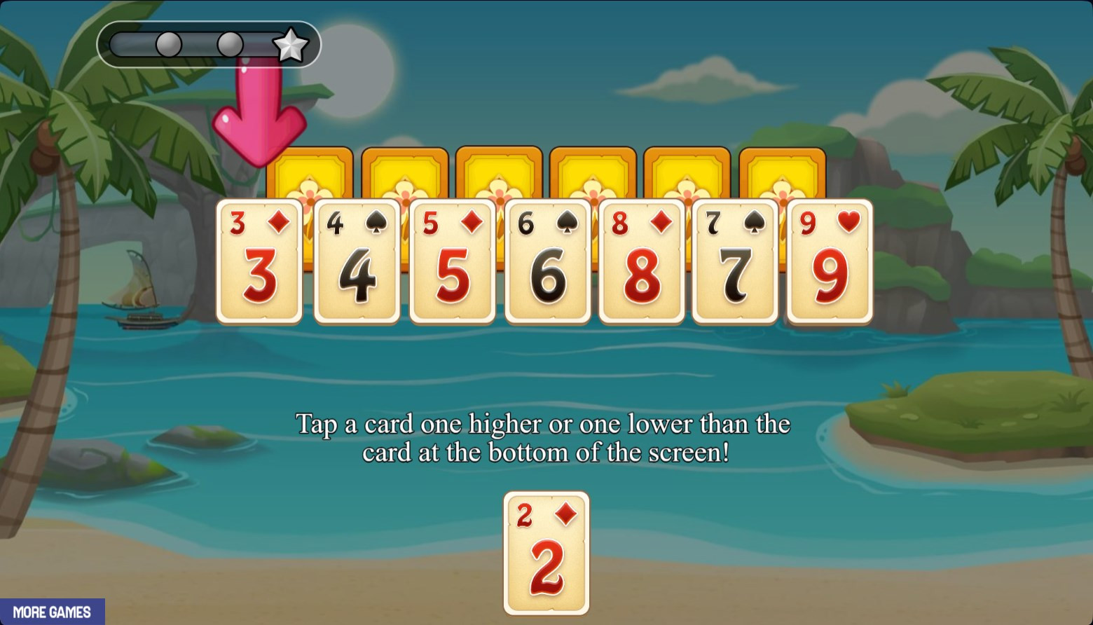 Control in the game "The Story of Solitaire - Three Peaks" on the computer is carried out with the mouse, and on the touch screens with the help of taps. The goal of Solitaire Story - Tripeaks is to clear as many squares as possible by touching the face-up cards that either precede or follow the highest card in the last card in the last post at the bottom of the screen. Try to remove as many cards as possible that form the same sequence. Sequence example: Ace, 2, 3, 2, Ace, King, Queen, Jack.