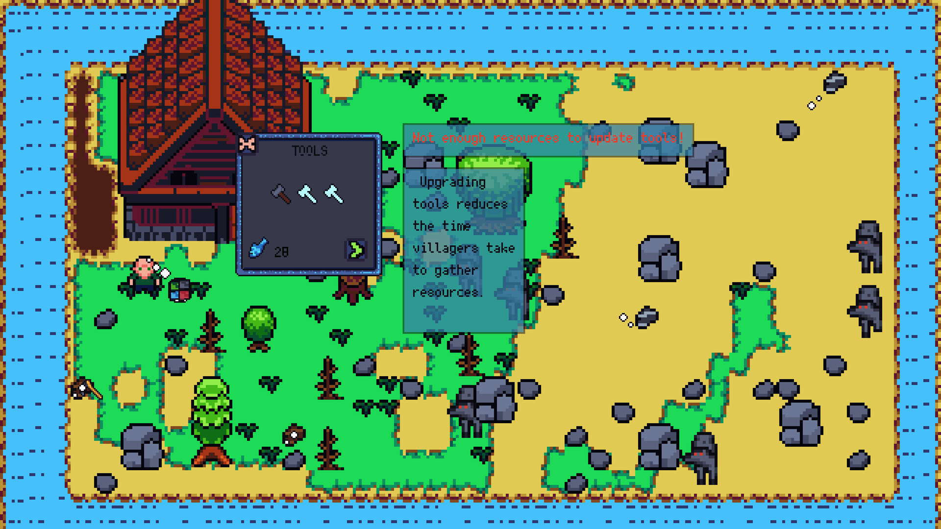 The game has weather changes that affect the player's gameplay, such as rain. In addition, there are wild animals that can harm the village, from wolves to birds.