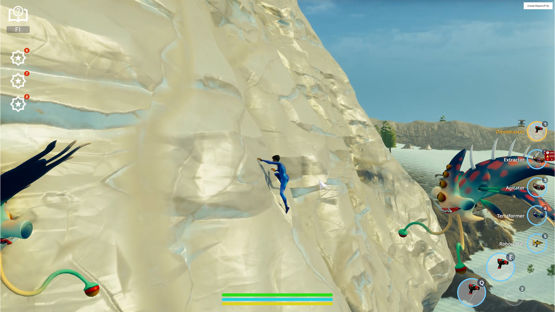 Explore and map newly discovered worlds on the far side of wormholes inhabited by extradimensional creatures. Every planet has unknown flora and fauna with varying smarts, behaviors, and taste for human flesh. And every world is alive. Get swept away by the current of a raging river, or watch a forest burn when you carelessly miss your shot. These are planets where trees grow and water flows, where creatures live out their lives migrating and competing. Planets where seasons change and where what you do to the environment around you persists – and matters.
