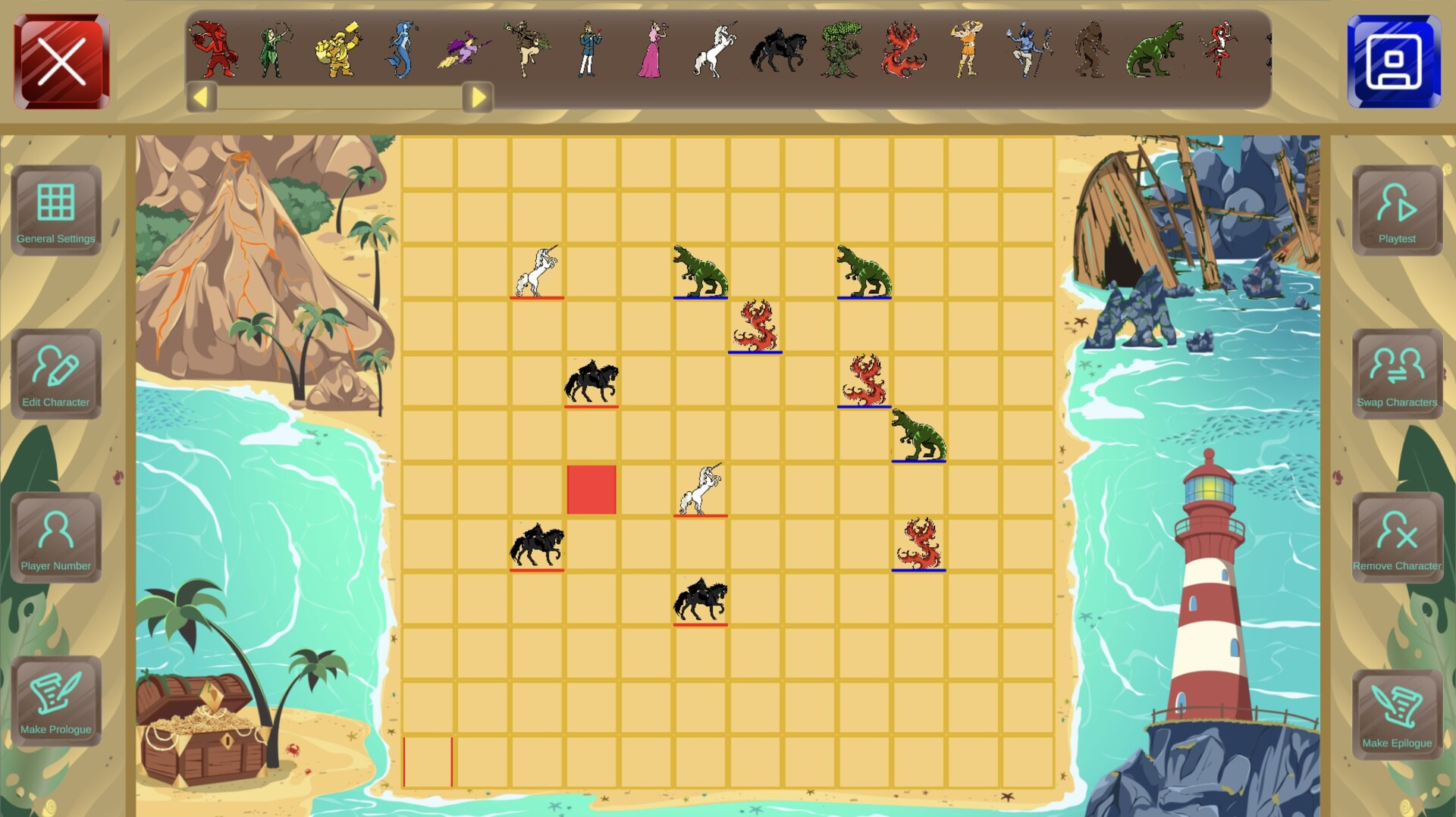 Multiplayer Tactics Game. Choose 9 characters, battle your friends. The player with the most characters at the end wins. The full game includes 45 characters. The demo has 25. Characters have diverse powers. Dragons breathe fire in a straight line, Prince Charming seduces other characters, Werewolves bite characters to transform them into Werewolves, and much more. The game includes local multiplayer, online multiplayer, story mode, and a level editor. Find your favorite combinations, play with your friends, and see who wins.