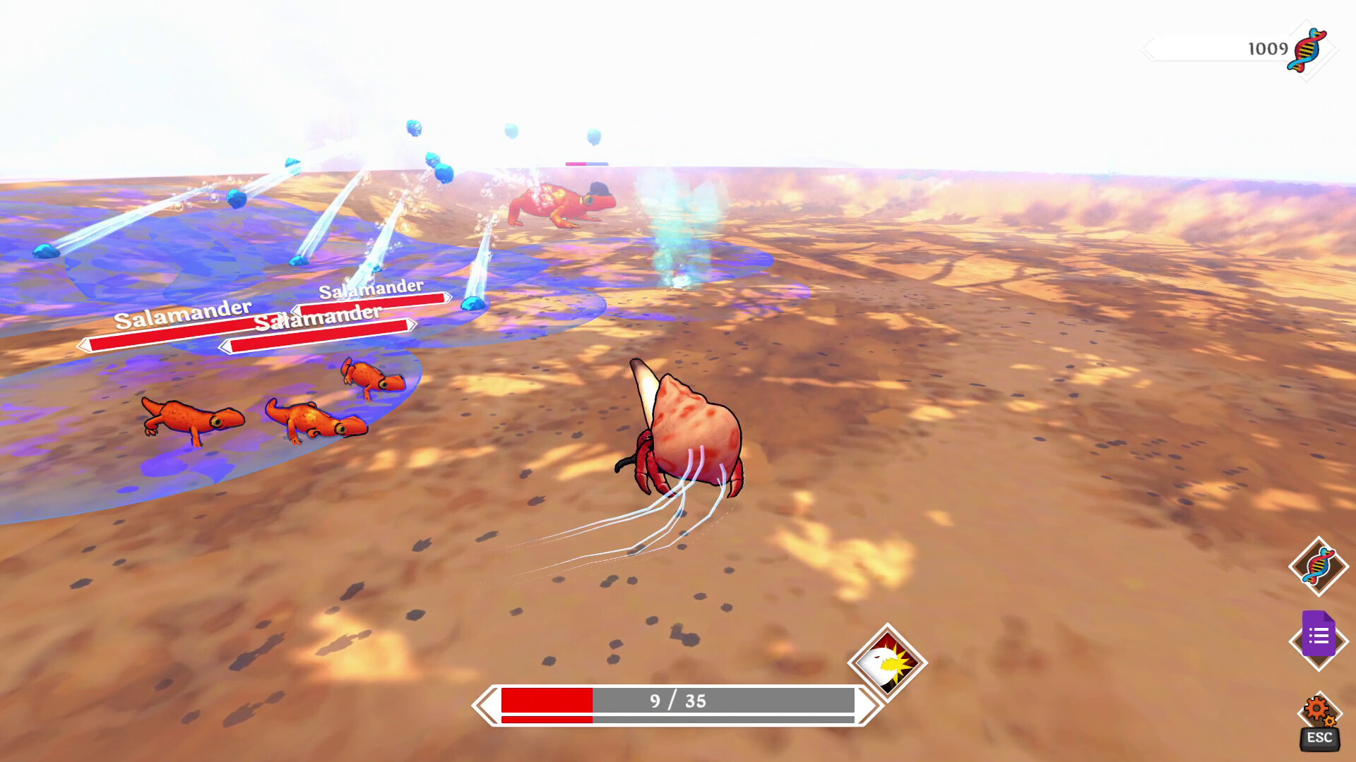 Acquire parts DNA from any creature you eat. Combine parts to achieve the most powerful body! However, be careful not to neglect any part of your form. A powerful head and torso might be good for fighting — but too slow to chase down prey. No creature part is useless!