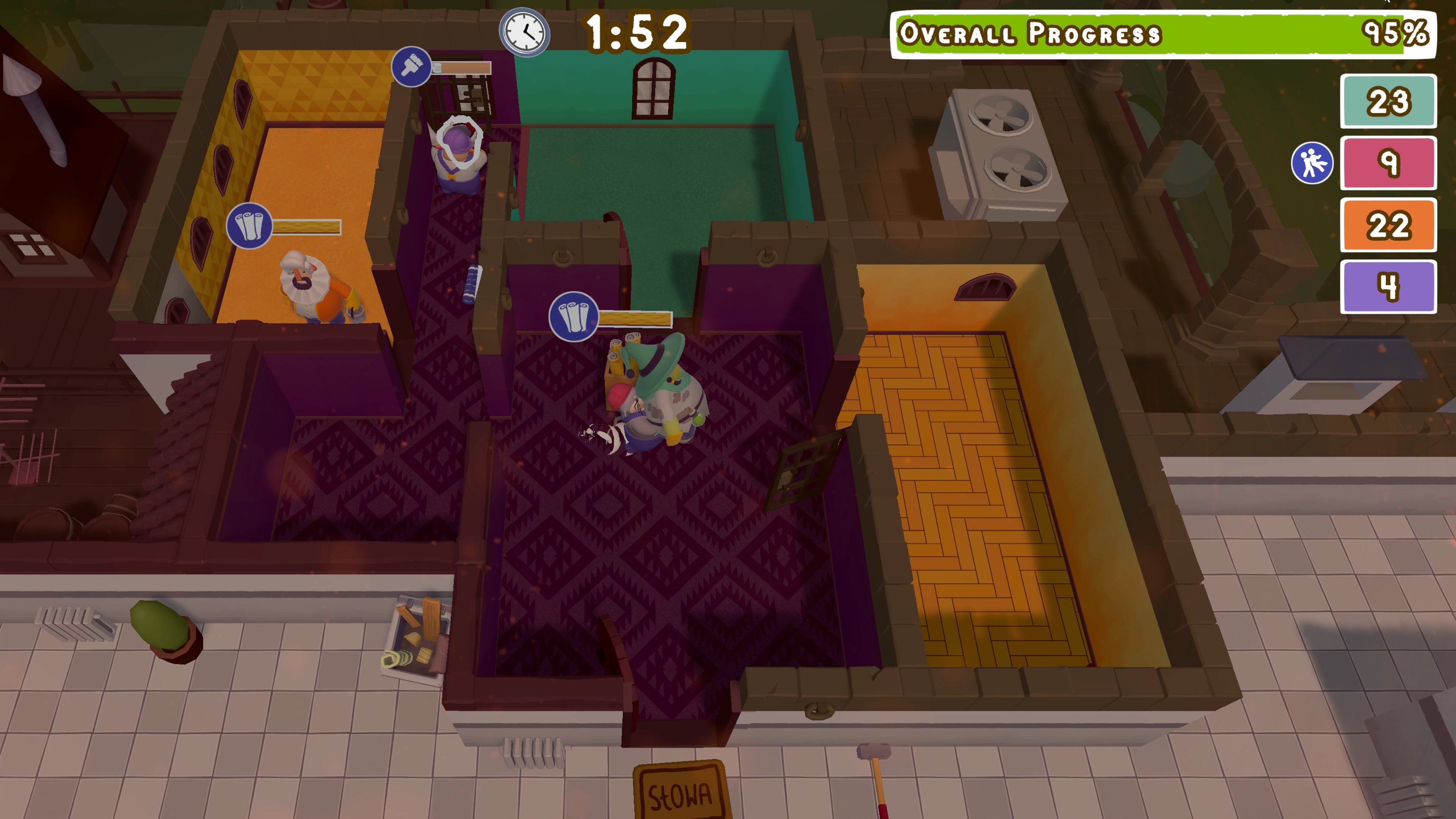 A brand new player vs. player mode that pits your team of renovators against each other! Race to complete the most tasks possible but also interfere with the other teams every step of the way. Various gameplay modifiers will keep everyone on their toes and can be played in various combinations for up to 4 players, e.g., 1v1, 2v2, 1v2v1, 1v1v1, 1v1v1v1, etc.