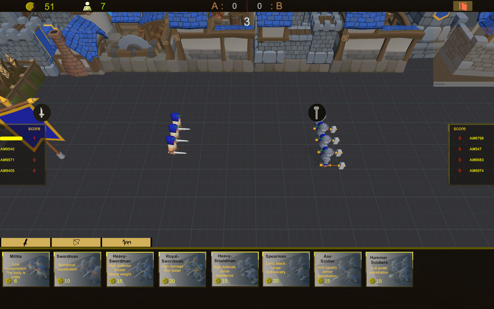 · This is a lightweight game, characterized as casual and easy to use, with almost no learning costs, all you have to do is buy soldiers and click, move or attack. The game is divided into multiple rounds, round interval to obtain a certain gold, you can buy soldiers, according to the opponent's lineup with their own lineup, the victory of the first to reach a certain number of victories.