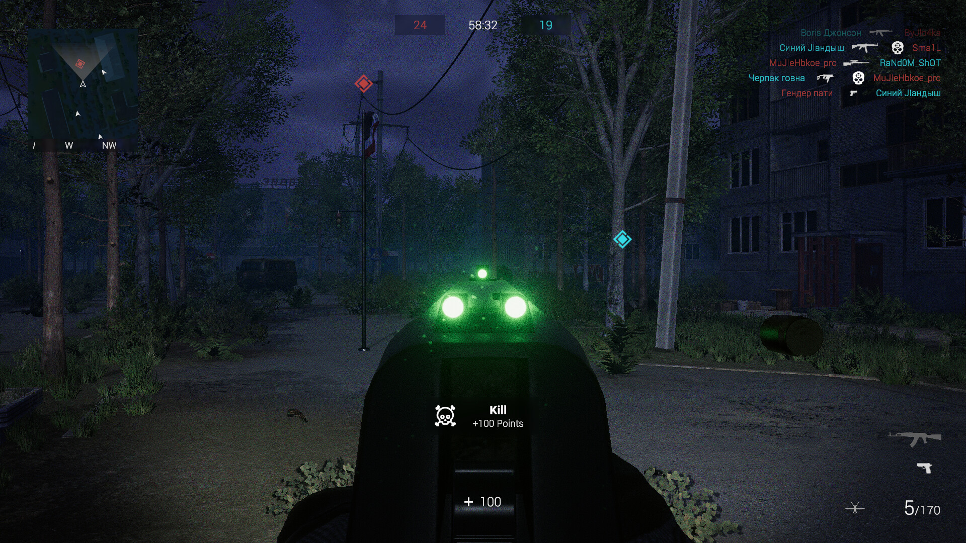 Take part in familiar childhood modes such as Point Control or Team Battle, with support for up to 16 players. The map size will adjust for each mode accordingly, creating continuous tension. Night maps add atmosphere and necessitate the use of flashlights, however they are not available for every weapon, which will force players to not get used to one weapon.