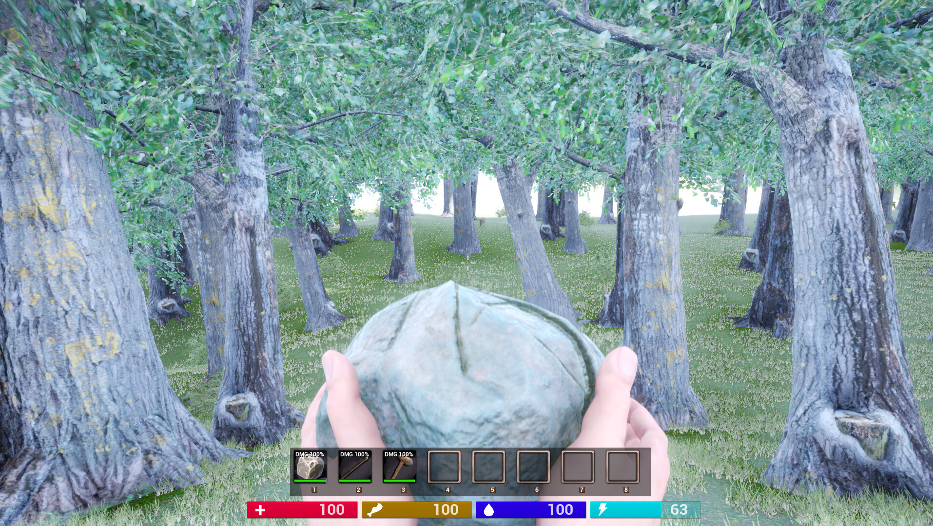 section for a game where players need to survive from wildlife, mine resources, craft items and structures,