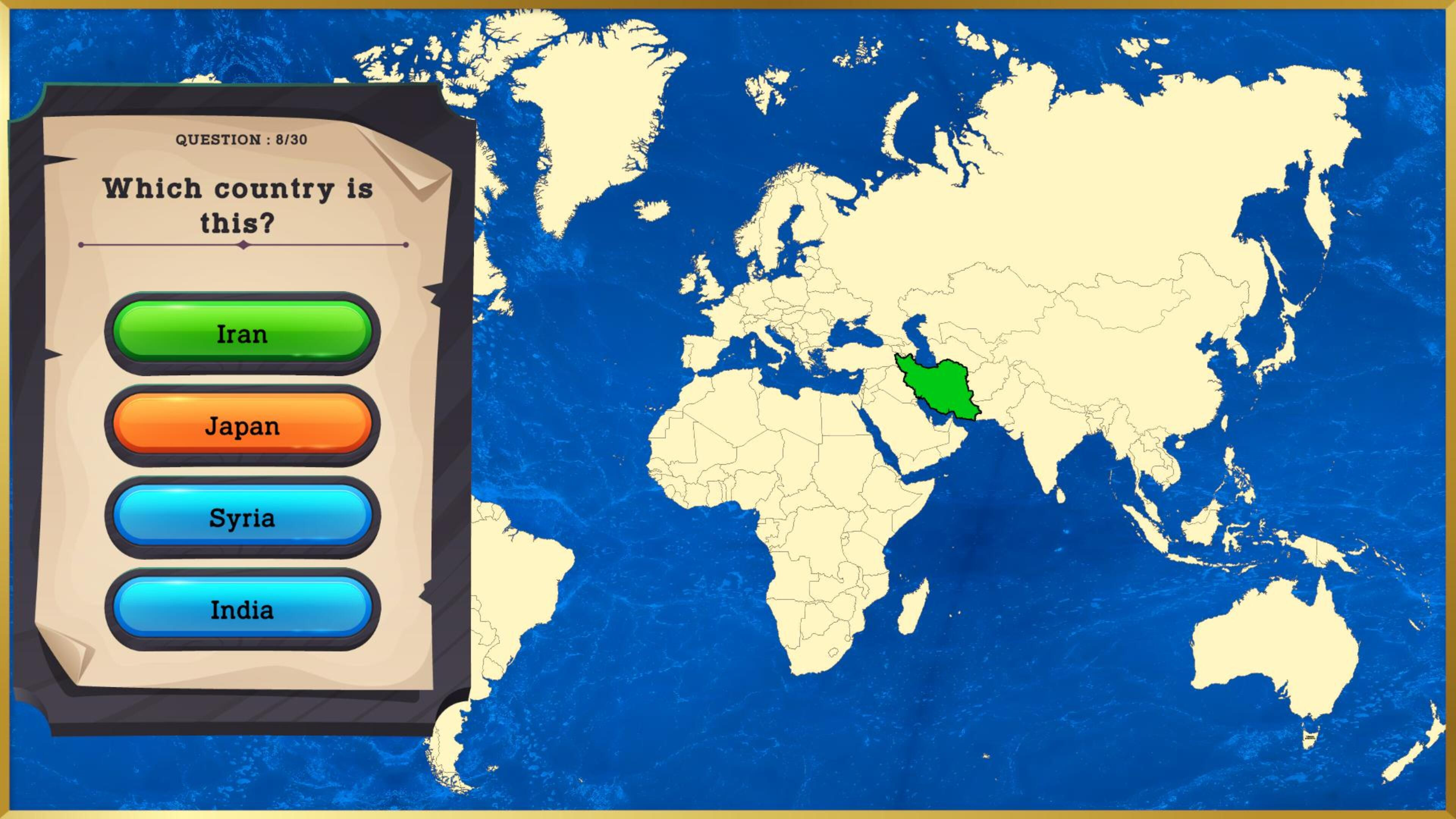 Are you ready to embark on a journey to explore the world and expand your knowledge? World Explorer Challenge invites you on an exciting adventure, diving into the culture, geography, and trivia of various countries. Choose your path: Question Mode tests your knowledge with random questions about countries, challenging you with easy, medium, and hard levels as you uncover fascinating facts. Alternatively, Country Mode turns you into a map detective guess the names of countries based on their locations and gradually master the world map. The world is waiting are you up for the challenge?